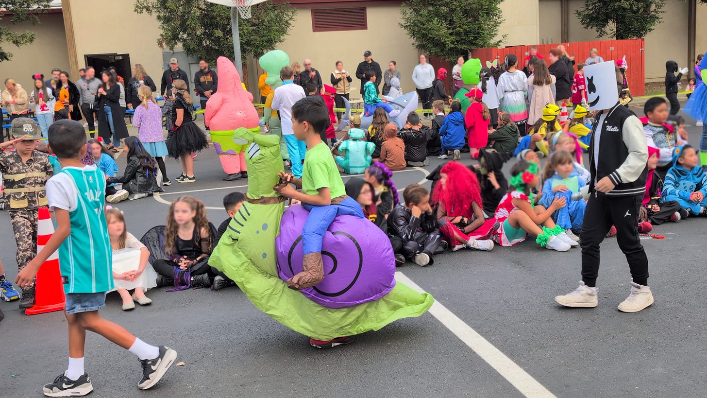 Every October, our school has a Halloween parade, which is a beloved tradition. Each class gets to show off their costumes to the rest of the school and the throngs of parents who line up, phones ready.